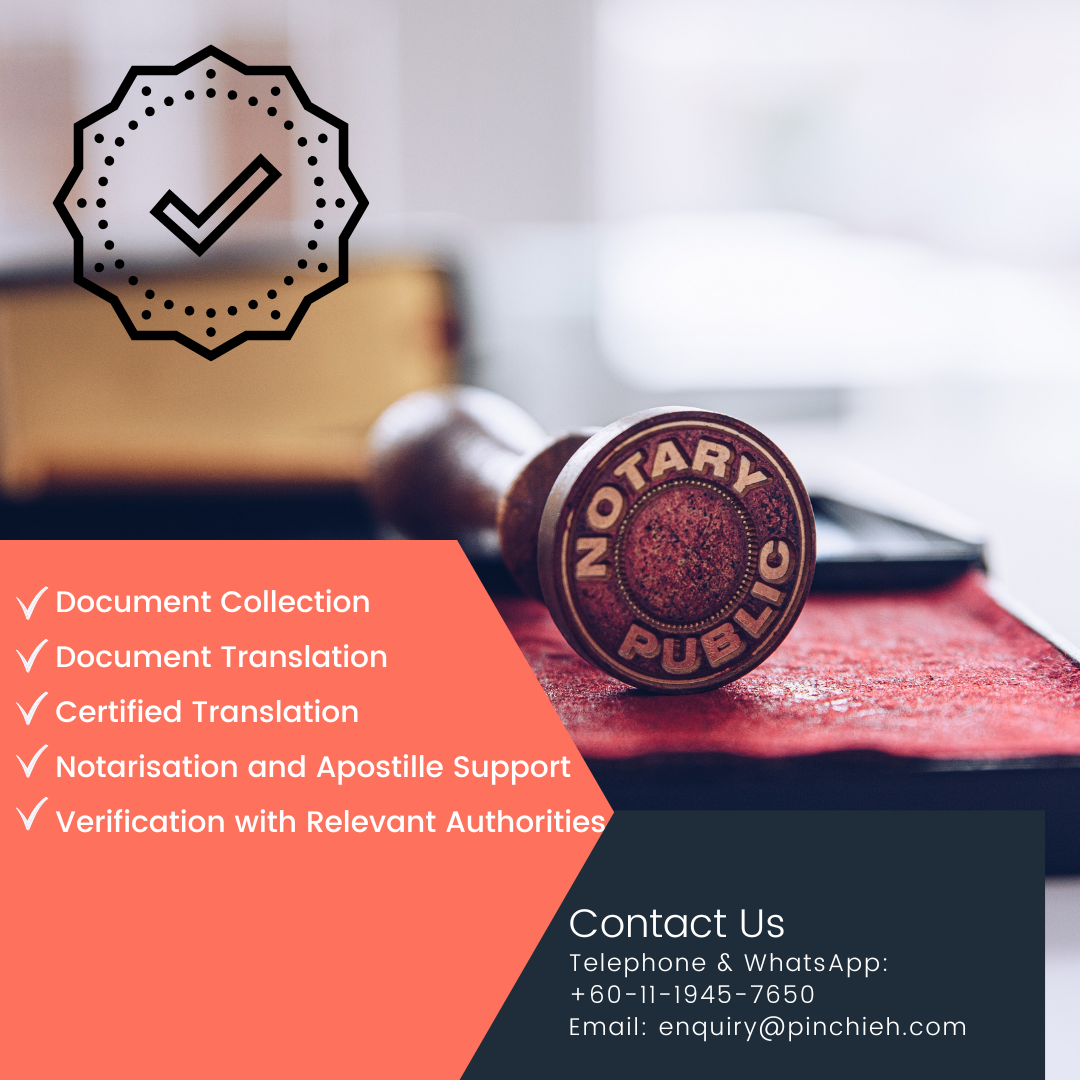Pinchieh provides domestic and international document translation, together with certification support for notarisation, apostille, and related verification processes in coordination with relevant authorities and professional partners. We help clients manage cross-border documentation efficiently through clear requirements checks, consistent formatting, and transparent pricing. Common documents include identity documents, marriage and divorce certificates, birth and death certificates, academic certificates and transcripts, employment records, statutory declarations, and other official papers required for overseas applications. Timelines are agreed in advance to support urgent submissions.