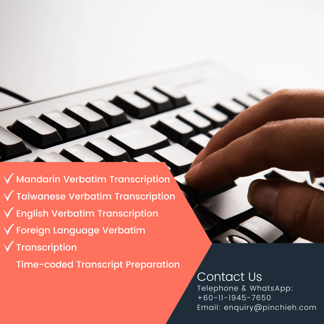 Pinchieh provides professional verbatim transcription services in Chinese, Taiwanese, and English. Delivery schedules are arranged based on your turnaround needs, with flexible support for meetings, interviews, lectures, and media content. Our experienced review team focuses on accuracy, consistency, and clean formatting. We can follow preferred styles upon prior notice, including punctuation and paragraph structuring, speaker identification, and time-code marking. Multiple file formats are supported to match your workflow, helping you save time while producing reliable, publication-ready transcripts for internal or external use.